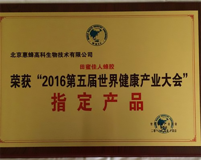祝賀北京惠蜂高科生物技術有限公司——蜂膠產(chǎn)品拿到2016世界健康產(chǎn)業(yè)大會指定產(chǎn)品